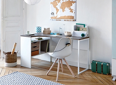 Une etagere de rangement sur 2 niveaux et un rangement lateral permettent dy entreposer les livres cables et autres fournitures. Le bureau informatique corner de mycocooning est assez grand pour accueillir un ordinateur une imprimante et dautres peripheriques. Le bureau parfait pour organiser votre espace car il est totalement mobile roulettes incluses.
