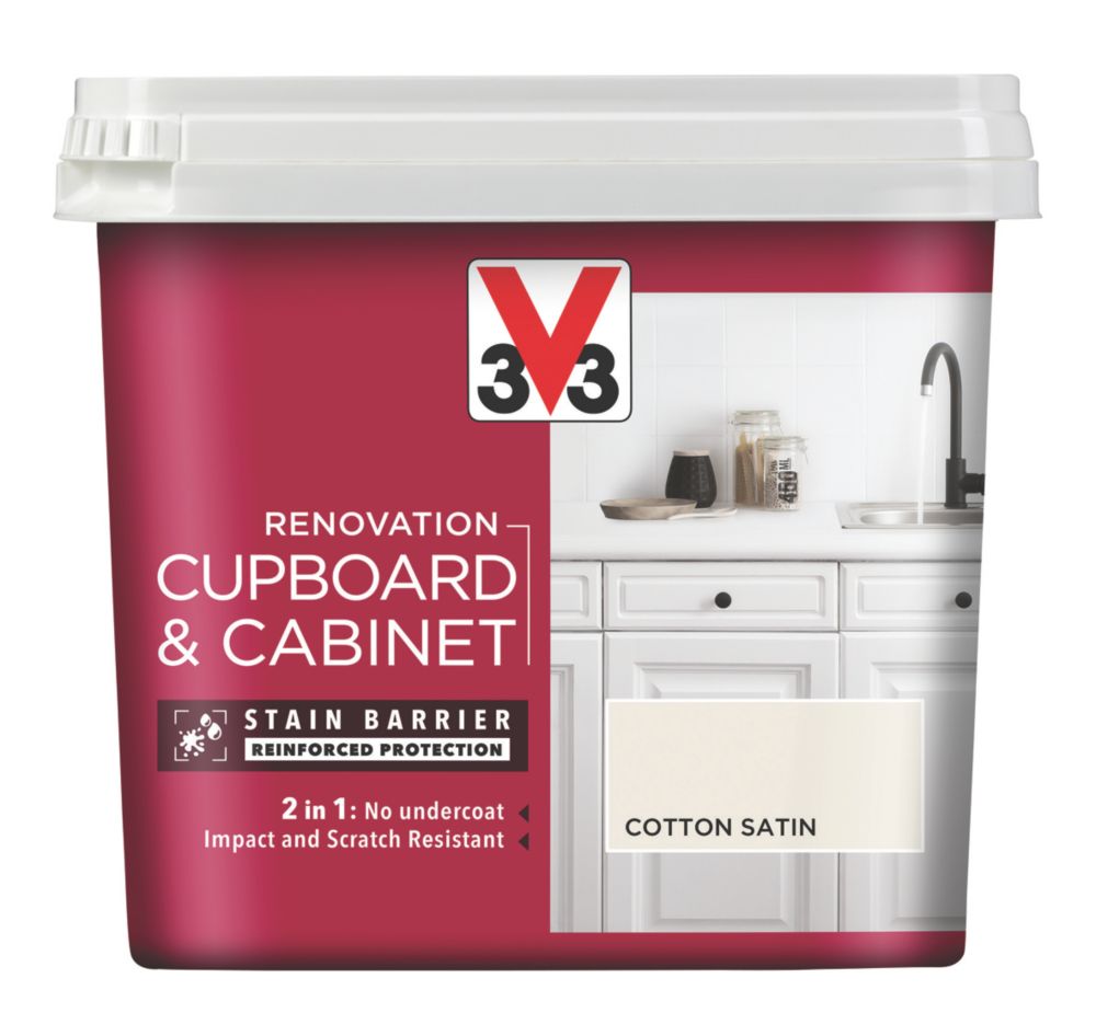 V33 Cabinet Paint Satin Cotton Off White 750ml Furniture Paints Screwfix Com