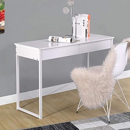 Furniturer Console Multifonction Meuble De Bureau Informatique Avec 2 Tiroirs Bureau De Travail Ordinateur Pc Laptop Notebook Blanc En Bois Amazon Fr Cuisine Maison