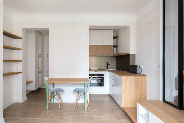 Un Studio Blanc Et Bois Optimise Grace A Un Meuble Multifonction