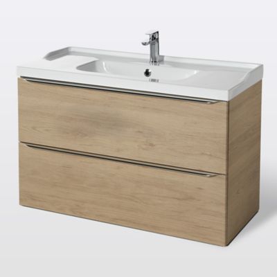 Meuble Suspendu Olo 100 Cm En Chene Naturel 1 Tiroir 1 Niche Et Son Plan Vasque A Gauche Meuble Vasque But