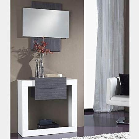 M 020 Petit Meuble D Entree Blanc Et Couleur Bois Gris Moderne Savoca Amazon Fr Cuisine Maison